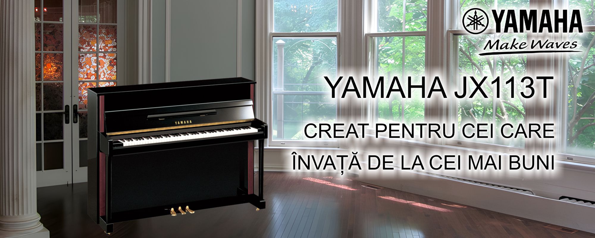 Caracteristici cheie și avantaje: Pian acustic compact (înălțime 113 cm, produs în Indonezia), care combină un design clasic (negru lucios cu inserție de mahon) cu un sunet puternic și bogat. Instrumentul este echipat cu 88 de clape, un mecanism cu ciocănele de înaltă calitate, o placă de rezonanță din molid și este ideal pentru studiul acasă, oferind un raport excelent preț-calitate.